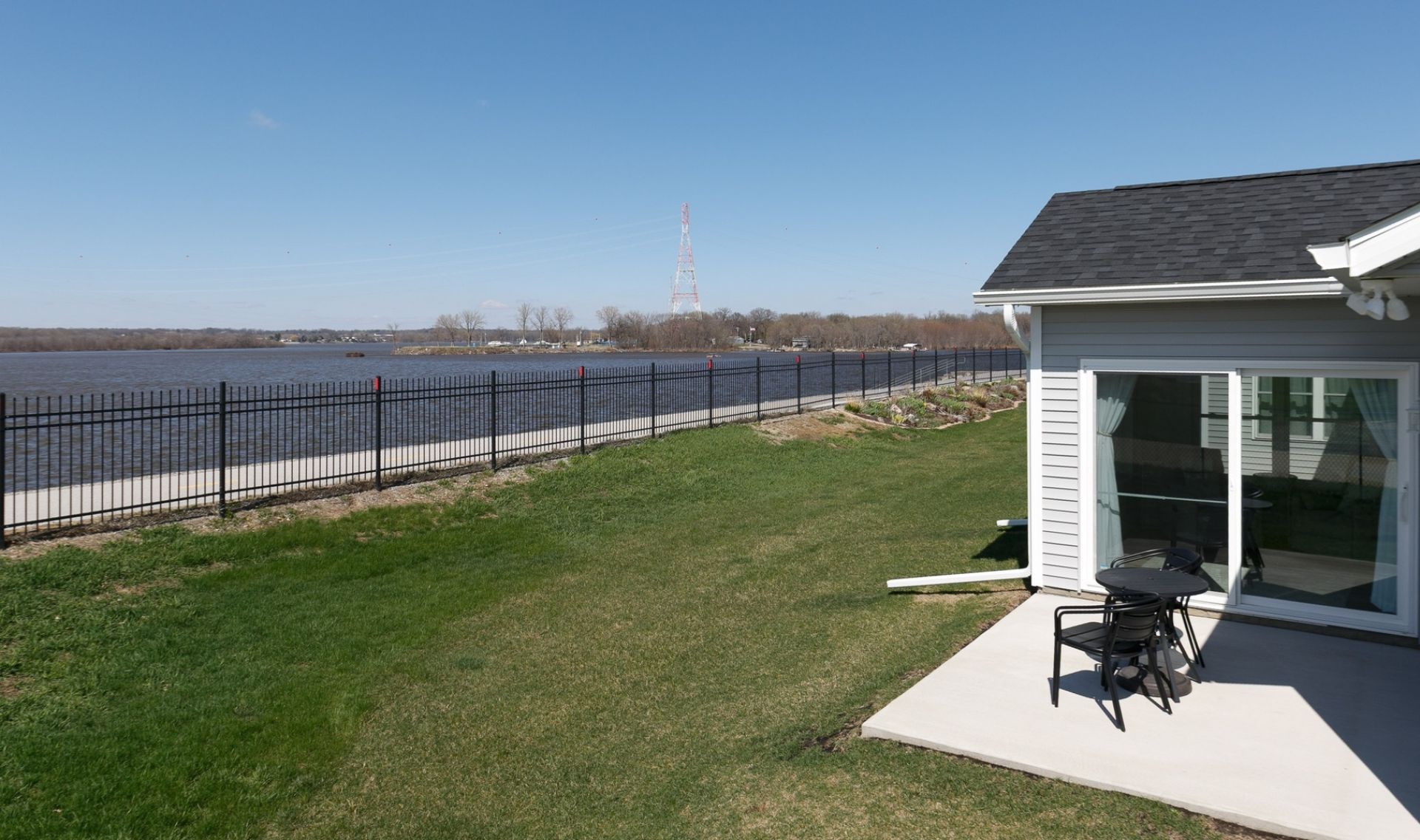 Stunning Riverfront Ranch with Zero-Step Living! Enjoy effortless living in this beautifully designed attached single-family home perfectly positioned along the riverfront with breathtaking views both up and down the water. This slab construction offers true zero-step entry, making everyday living convenient and accessible. Inside, you'll find a bright, open-concept layout highlighted by soaring cathedral ceilings and expansive windows that flood the space with natural light while showcasing the incredible river views. Modern black fixtures and lighting throughout add a sharp, contemporary touch that perfectly complements the home's clean design. The kitchen is a showstopper, featuring quality quartz countertops, a large island with waterfall edge, and a full suite of appliances-perfect for both everyday living and entertaining. The home offers 2 bedrooms and 2 full bathrooms, including a spacious primary suite with a private bath highlighted by a gorgeous tiled walk-in shower, walk in closet and views of the river. The second bathroom features a soaking tub with tile surround, providing both comfort and style. A true highlight is the four-seasons room-an ideal space to relax and take in the views year-round-leading directly to a rear patio overlooking the river and adjacent bike path. Additional features include: *Main floor laundry *Attached 2-car garage *Lower-maintenance living with HOA covering lawn care and snow removal This is a rare opportunity to own a low-maintenance, riverfront home with modern finishes, elevated design, and unbeatable views.
