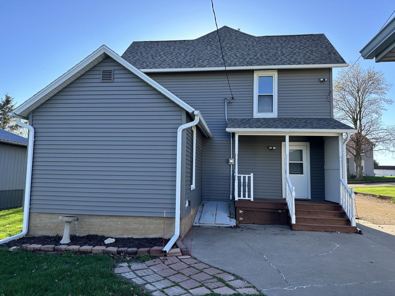 Charming home full of character and nestled in a quiet neighborhood community! The exterior of the home has been nicely updated with all new gutters, siding, roofing, some windows, and lighting completed in 2024. All outside updates add to great curb appeal. The spacious garage is 24 x 32 with an 8ft tall door to accommodate larger vehicles, storage or perhaps an extra space for projects. The interior features beautiful original woodwork and great bones. Appliances stay with home. Main floor is the location of the first bedroom and it does have a water closet. This home offers tons of potential and is perfect for someone looking to make it there own.